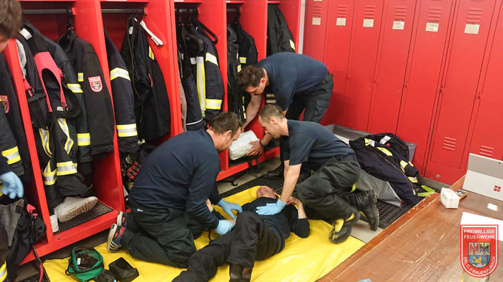 Am Samstag hat ein Teil unserer aktiven Mannschaft eine mehrstündige medizinische Fortbildung absolviert. Speziell die Mitglieder unserer AED-Gruppe, welche zu "First-Responder" Einsätzen ausrückt, werden regelmäßig derartig geschult um die Qualität der Hilfeleistung sicher zu stellen. Neben einem Theorieblock, mit dem Schwerpunkt "Kindernotfälle", wurden auch diverse praktische Fallbeispiele beübt. Dafür stand unter anderem auch eine Kinderreanimationspuppe zur Verfügung. Weitere Grundlagen wie Blutdruckmessung, Blutzuckerbestimmung, Handhabung von Stiffneck und weiteren Gerätschaften, sowie Umgang mit Patienten wurde in den Beispielen praktisch geprobt.